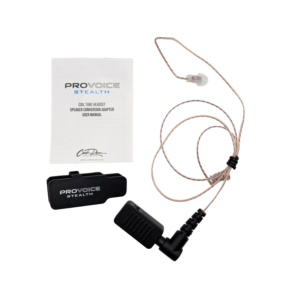 Converts a standard Coil Tube headset (with offset sized pins) to the ProVoice Stealth™ Lavalier CTIA earpiece.